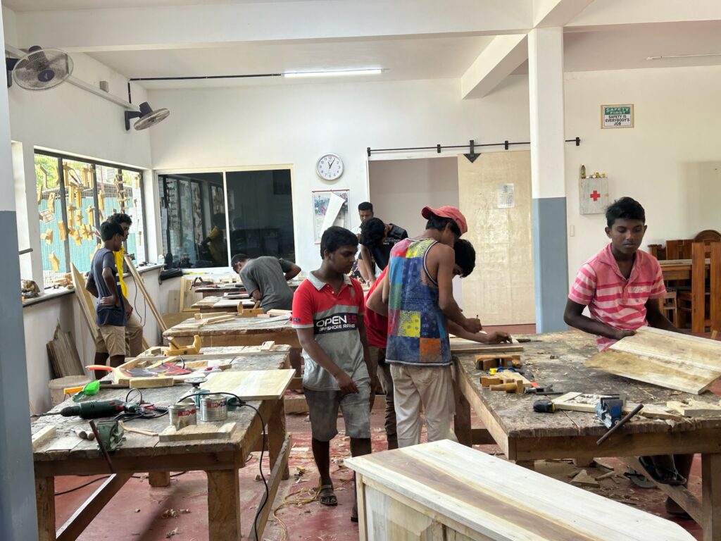Seit 2015 betreiben wir eine Lernwerkstatt für SchreinerInnen. Jungen und Mädchen ab 15 Jahren wird von einem einheimischen Schreinermeister während 11 Monaten kostenfrei eine umfassende Ausbildung im Möbelbau angeboten. Sie lernen alle Arbeitsschritte vom Einsatz einfacher Holzverbindungen bis hin zu komplexen Möbelkonstruktionen.